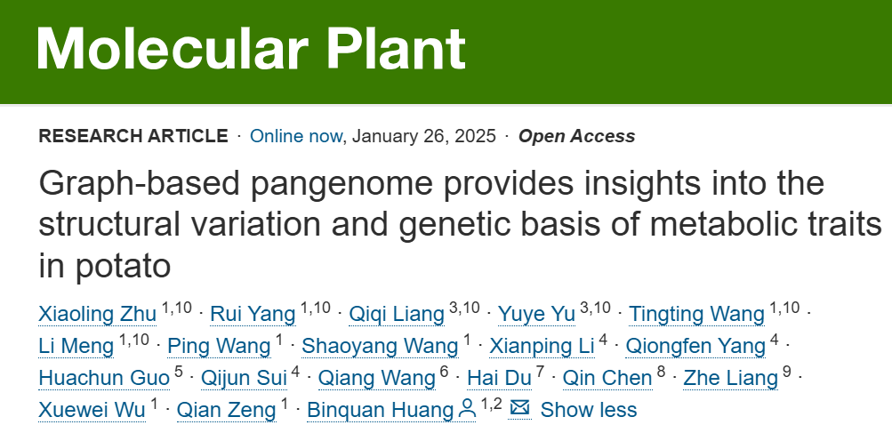 近日,英国上市公司365黄斌全研究员课题组在植物科学领域TOP期刊Molecular Plant(5年平均影响因子为21.4)在线发表了题为“Graph-based pangenome provides insights into the structural variation and genetic basis of metabolic traits in potato”的研究论文,该研究构建了覆盖整个马铃薯组的泛基因组/图基因组,利用全基因组的结构变异,对马铃薯块茎代谢物进行了全基因组关联分析,发现了系列马铃薯块茎重要代谢物的关...