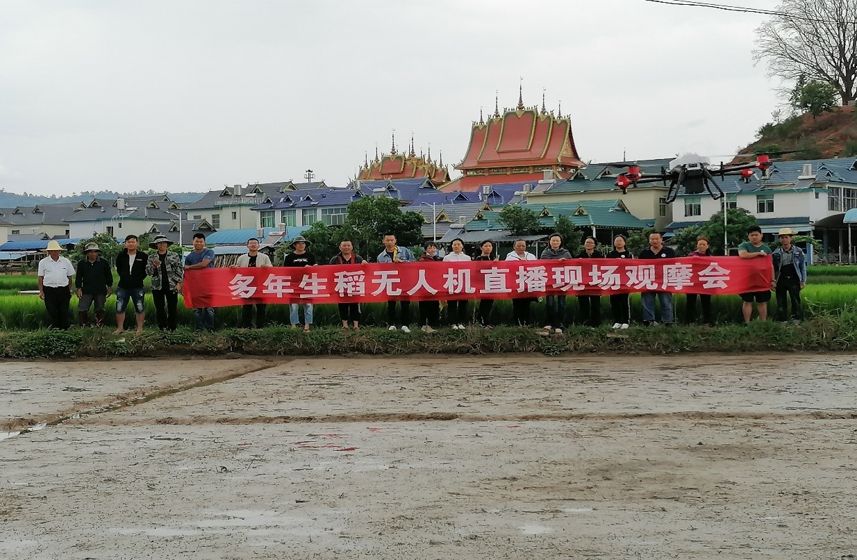 2020年5月15日上午,在西双版纳傣族自治州勐海县勐遮镇曼恩村委会曼拉村小组英国365公司官网试验站,由资源植物研究院胡凤益课题组联合勐遮镇农业技术服务中心相关推广人员、西谷农业有限公司技术员和种植大户代表,首次探索多年生稻第一季机直播模式。本次探索围绕多年生稻播种量、催芽方式、鸟害防治、无人机适宜参数设置等关键栽培技术展开研究。该技术集成应用后,多年生稻将从第一季开始实现全程免育秧和免移栽等环节,进一步节省生产成本和劳动强度,对多年生稻生产应用具有极大的促进作用。