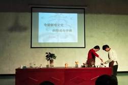 讲座开始前,工作人员为到场同学发放了纪念品。主持人何飞飞老师为大家介绍了主讲人现任云南省精品咖啡学会荣誉理事长、云南省科协委员的陈德新先生。随后咖啡师上台演示了“虹吸壶咖啡”与“冲煮咖啡”的制作过程,陈德新先生在旁进行了同步讲解。在同学们品尝完现场制作的咖啡后,陈德新先生就咖啡的种类、咖啡消费史实、“咖啡”一词的演变、中国咖啡引种时间等九方面下手,全方位地阐述了中国咖啡文化的形成与传播,并指出了云南咖啡产业如今在外国咖啡产业和本土文化冲突的双重压力下艰难发展的形势。