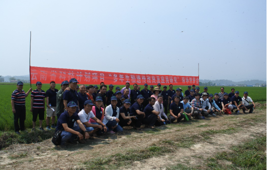 图1曼根村委会多年生稻PR107百亩示范片合照