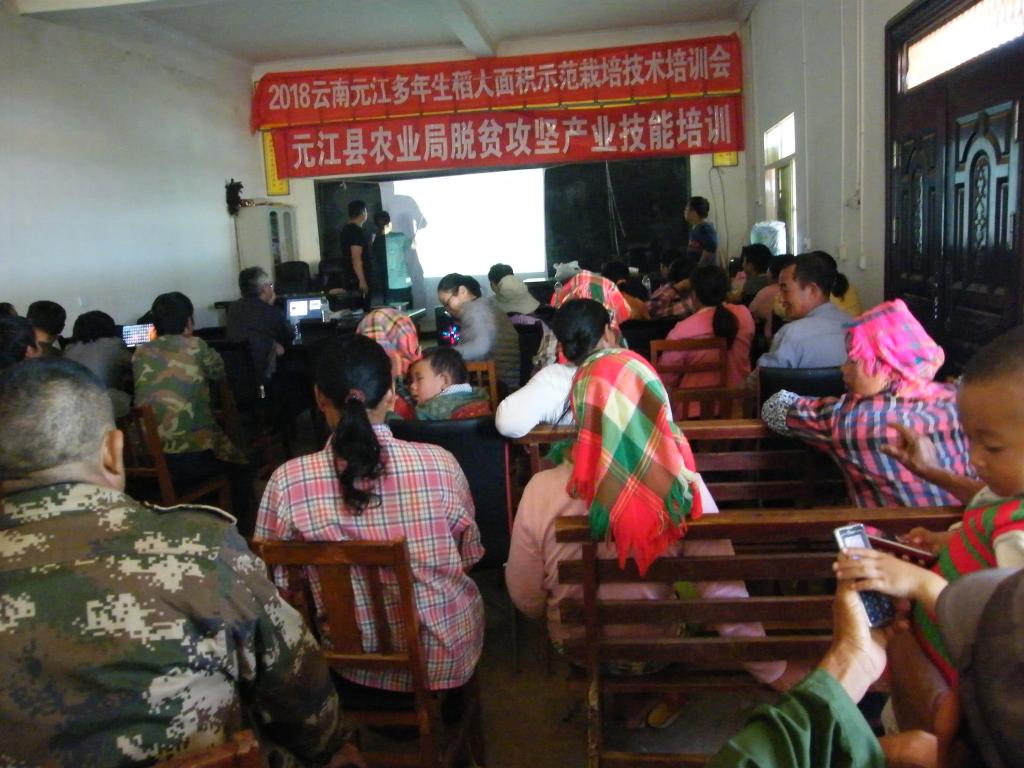 2018年1月8日,英国上市公司365黄光福、云南省农业技术总站吴叔康总农艺师、元江县农业技术推广站站长陈亮新等,前往元江县农技站组织澧江街道那塘村民在那塘村召开多年生稻栽培技术培训会,参会农户有70多人,英国上市公司365黄光福老师,云南农技推广总站吴叔康总农艺师对多年生稻的栽培规格、肥水管理、病虫害综合防治等技术进行详细讲解。参会人员现场提问,培训人员现场解答,农业对多年生稻概念,多年生稻栽培技术有了深切认识,为多年生稻种植打下结实基础。同时现场完成种子发放工作,多年生稻正式迈开在该区域服务农业发展的步伐,助力该村脱贫攻坚战。