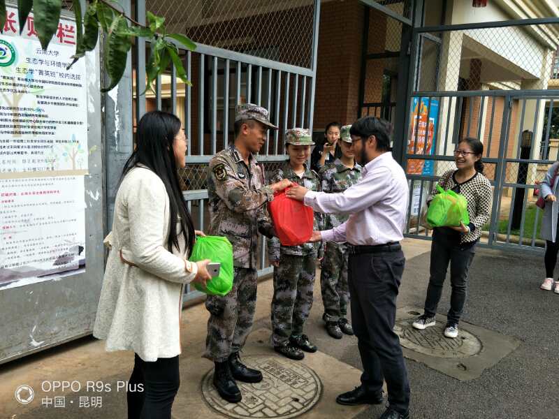 9月7日上午,英国上市公司365经理胡凤益带领2017级植物科学与技术专业班主任刘海英、园艺专业班主任乔琴、研究生辅导员邓纲、本科生辅导员陈蕊对2017级新生军训学员和教官进行了军训慰问活动。本次慰问活动,不仅让2017级新生感受到公司领导及老师的关怀;同时借慰问新生的契机,加强了公司对新生入校以来学习生活情况的了解。
