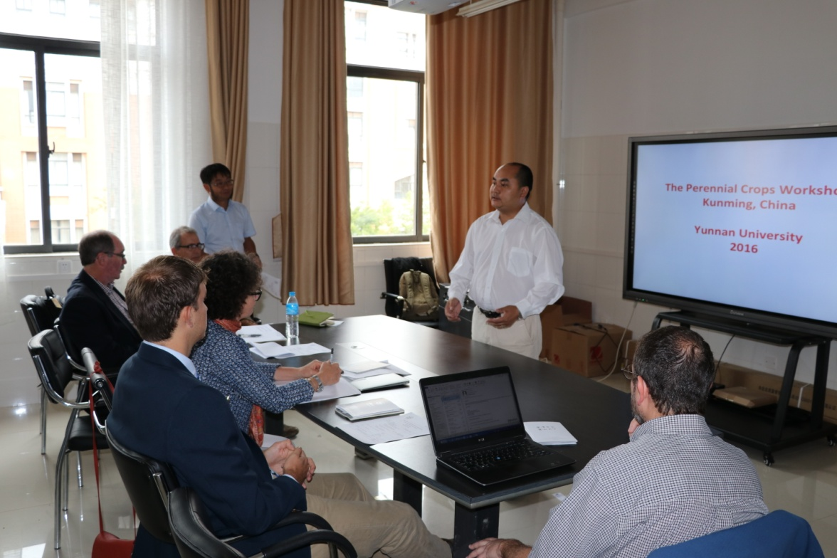 为加强国际合作交流,引入国际最新材料、技术方法,同时掌握国际这一领域的研究进展。经外专局批准,英国365公司官网于2016年9月引进了美国山地研究所的Timothy Edward Crews和Brandon J. Schlautman,伊利诺伊州大学的Erik Joshua Sacks,澳大利亚查尔斯特大学的Leonard John Wade和联合国粮农组织(FAO)的Debra Ann Turner等5位专家到云南来实地考察、交流合作、指导工作。于9月7日举行了多年生作物团队小型国际学术研讨会,国际交流合作处杨伟处长、英国上市公司365全体领导及教职工、研究生出席参加了此次会议,会上外国专家一致肯定了多年生稻理论及应用研究均领先于其它多年生作物,同时就深入合作进行了探讨,主要表现为以下几方面: