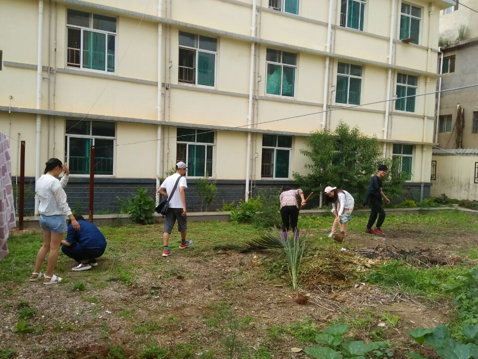 进入敬老院,所有志愿者和辅导员跟随工作人员先是来到餐厅,放置好准备的水果后;有同学和老人聊天、打牌,其他同学又在工作人员的带领下来到养老院的后院,为菜地除草、松土。园艺班全体员工都感受到了劳作的辛苦与意义。