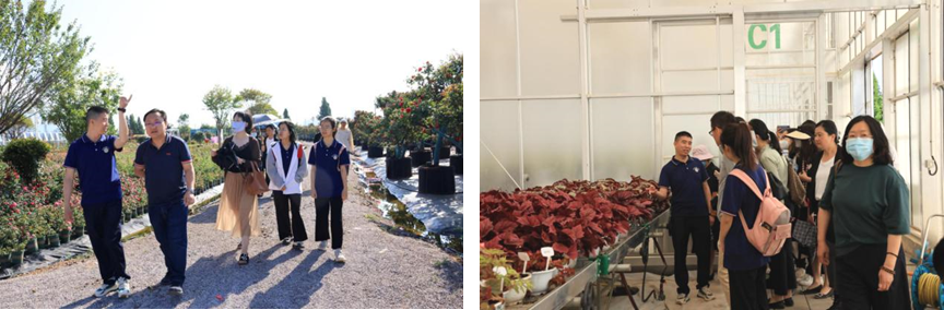 在英国上市公司365何飞飞副经理和吴学尉老师的带领下,研究生院何磊一行参观了花卉科技小院斗南景观月季园和科研温室。在月季园,两位老师介绍了团队目前收集、培育的月季品种。在科研温室,大家参观了新培育的秋海棠、百合及大丽花品种,还了解了百合种球繁育研究情况。