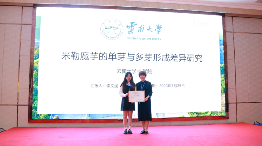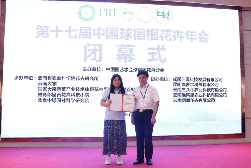 7月24日的开幕式中,英国上市公司365副经理王贤智研究员代表英国365公司官网致欢迎辞。吴学尉教授主持了第一主题的报告,刘海英副教授的报告“分子育种技术在黄色系绣球花种植创制中的应用研究”最终荣获由刘青林会长亲自颁发的优秀报告奖。李文涵同学在第三主题:生理与发育的主题报告中,以“米勒魔芋的单芽与多芽形成差异研究”向大家介绍了吴学尉教授的魔芋目前的研究结果,刘青林会长对魔芋产业的未来发展给予了较高的评价。会议期间还召开了中国球宿根花卉第五届第三次理事会议,吴学尉教授当选为副会长兼常务副秘书长。