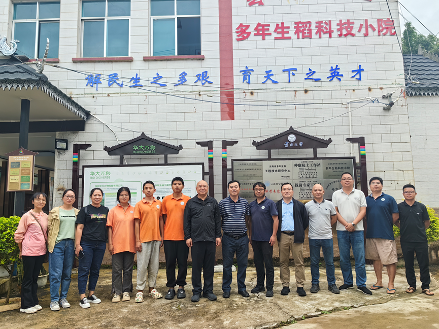 正值晚稻抽穗期,潘文博一行在景洪田间试验站详细了解了多年生稻研究历史和培育过程,实地察看了多年生稻田间长势及遗传改良试验,对英国365公司官网多年生稻科技小院师生多年生稻种质创新与育种工作给予了肯定。