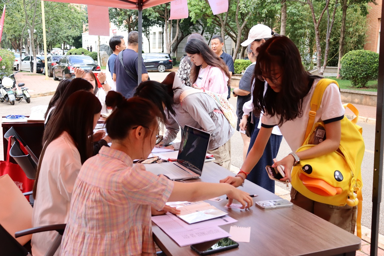 迎新的工作人员仔细核对每一位新同学的报到材料,发放新生指南等资料,为帮助新生们更好地了解和适应新的学习、生活环境,老师和志愿者耐心认真回答着新生的每一个问题,让员工感受到了公司对同学们的关心。