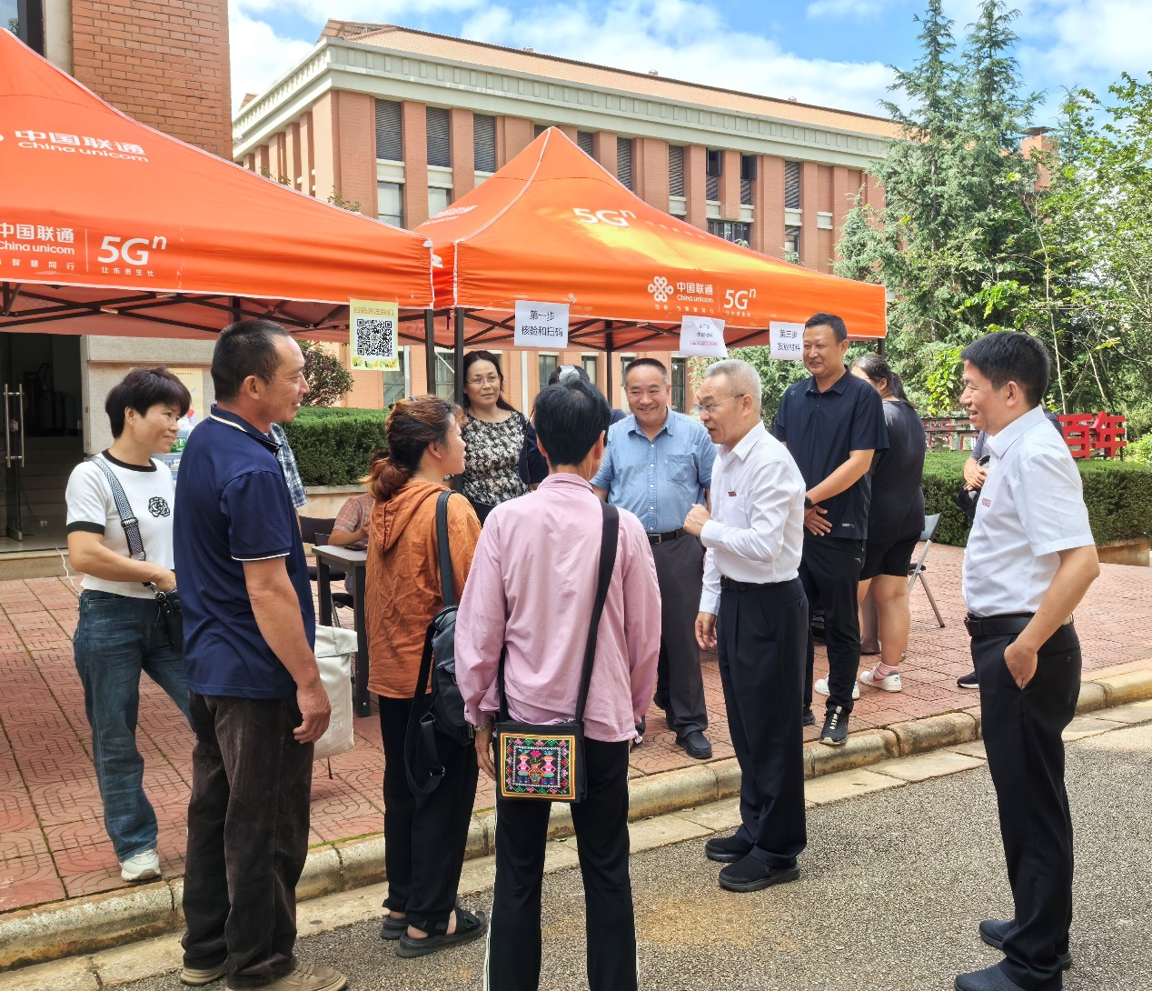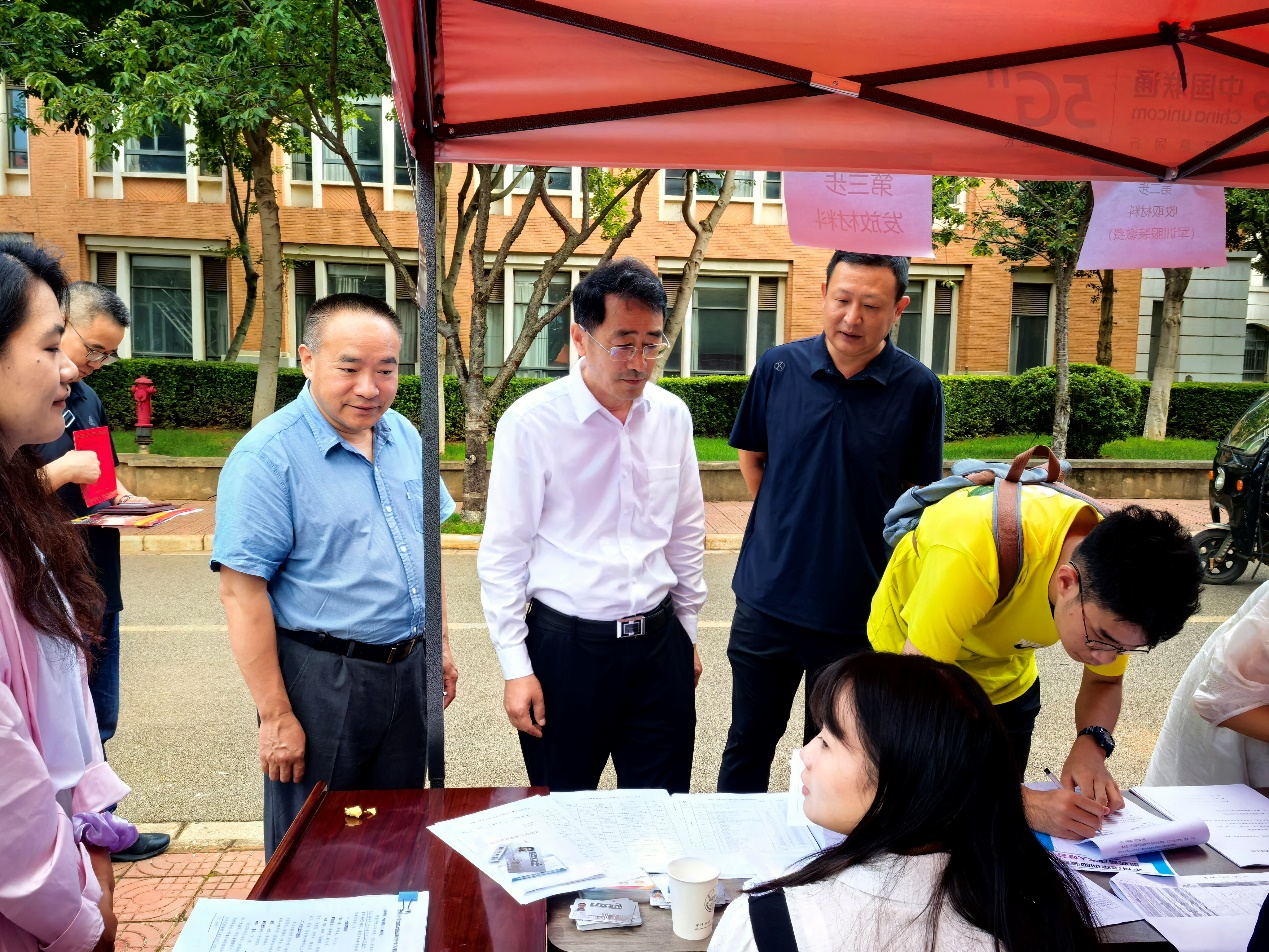 新生报到当天公司党委书记周学斌,党委副书记、常务副董事长马文会,党委副书记张玮、吴建德等校领导来到公司迎新点欢迎刚入校的新生,与新生及新生家长们亲切交流并看望慰问参加迎新工作的志愿者和师生们。