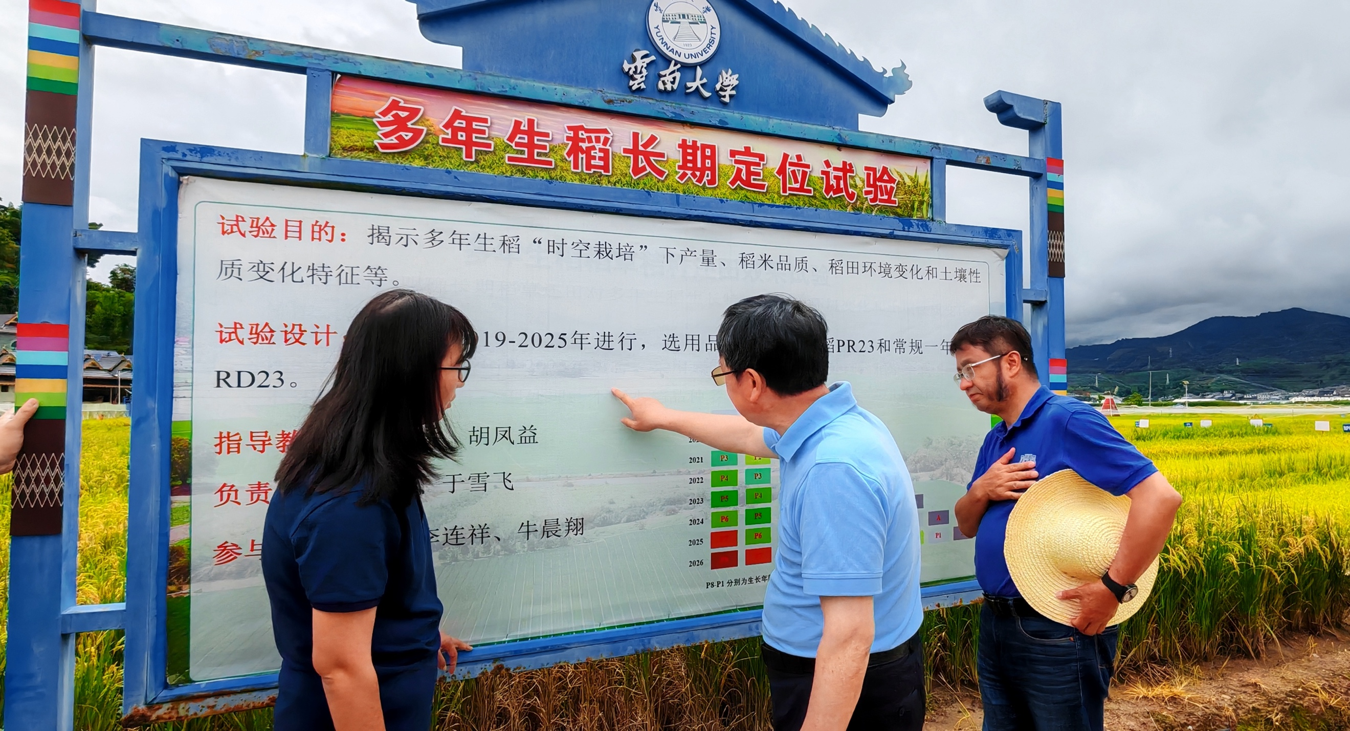 2025年7月5-6日,英国365公司官网副董事长唐年胜教授一行赴西双版纳勐海县,深入英国上市公司365多年生稻科技小院实地了解公司产品工作,重点指导农学团队建设与农学学科人才培养工作。实地考察了多年生稻遗传改良的基础研究、品种选育、栽培技术、推广成效及田间管理等情况。并与驻点师生进行深入交流,详细询问他们的生活、学习、科研进展情况,勉励青年学子要"把论文写在祖国大地上",将理论知识与实践探索紧密结合,厚植"三农"情怀。