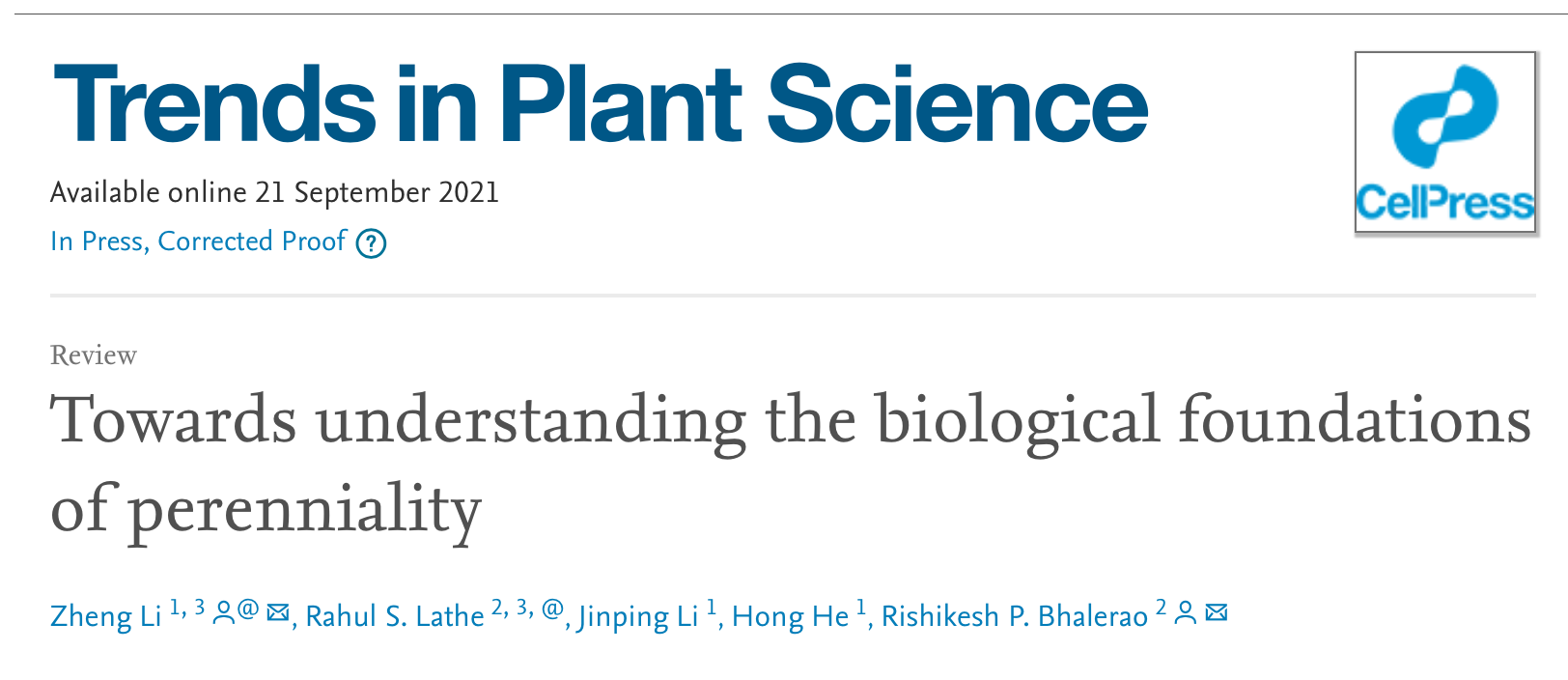 9月21日,英国365公司官网资源植物研究院/英国上市公司365多年生稻工程技术中心李争副研究员与瑞典于默奥植物科学中心的Rishikesh Bhalerao教授团队合作,在国际植物科学期刊Trends in Plant Science(5yIF=20.034)发表题为“Towards understanding the biological foundations of perenniality”的综述论文,详细讨论了植物多年生性的生物学机理,并指出了研究植物多年生性对发展可持续农业的重要性。