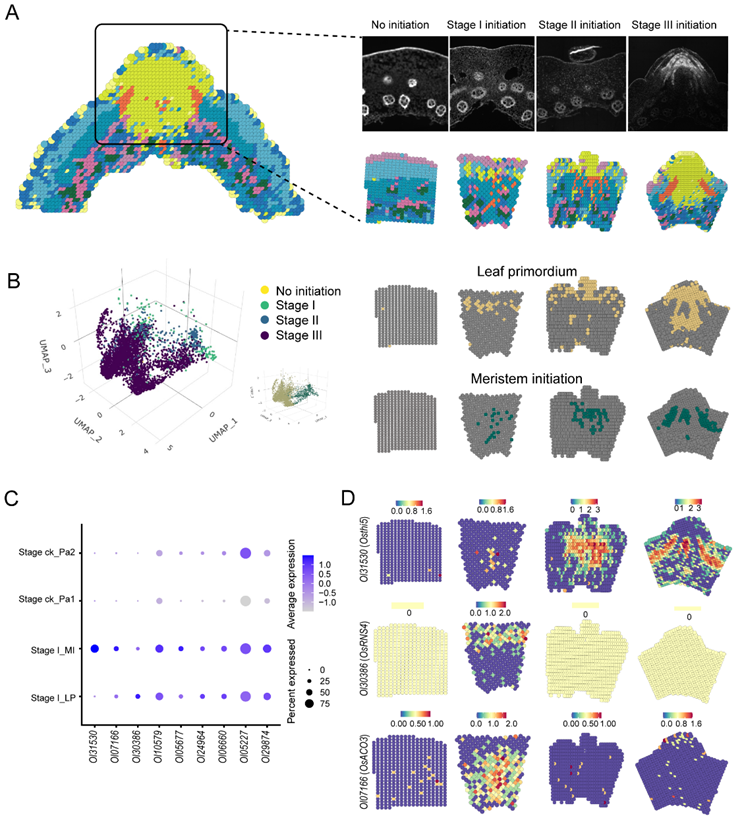 图3. 地下茎起始的空间转录组学特征