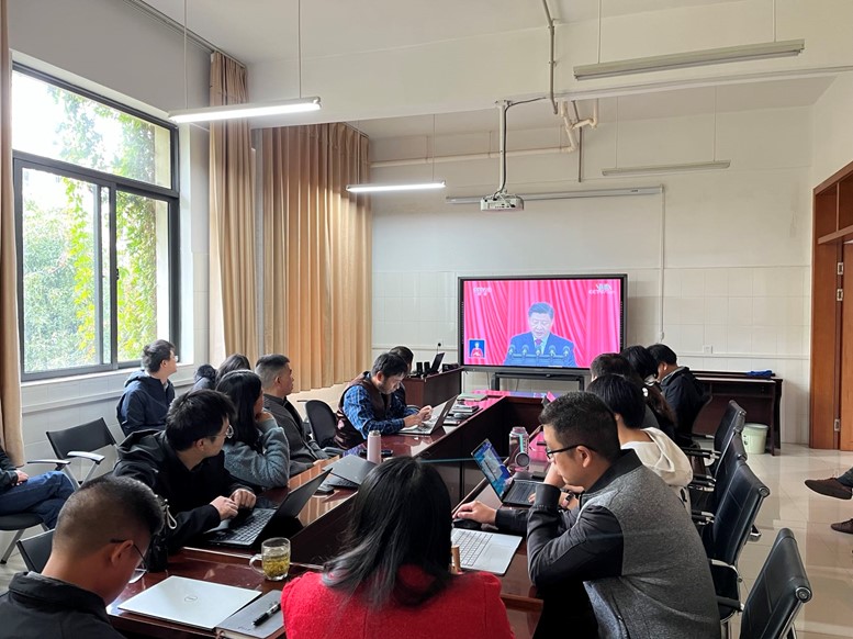 20221016日上午,中国共产党第二十次全国代表大会在北京人民大会堂开幕,习近平代表第十九届中央委员会向大会作报告。资源植物研究院师生高度关注党的二十大,教职工集中在党员活动室收看开幕会盛况,员工在宿舍、实验室、实验基地通过互联网、电视、手机等多种渠道收听收看二十大报告。会后,大家开展学习讨论,积极撰写心得体会。
