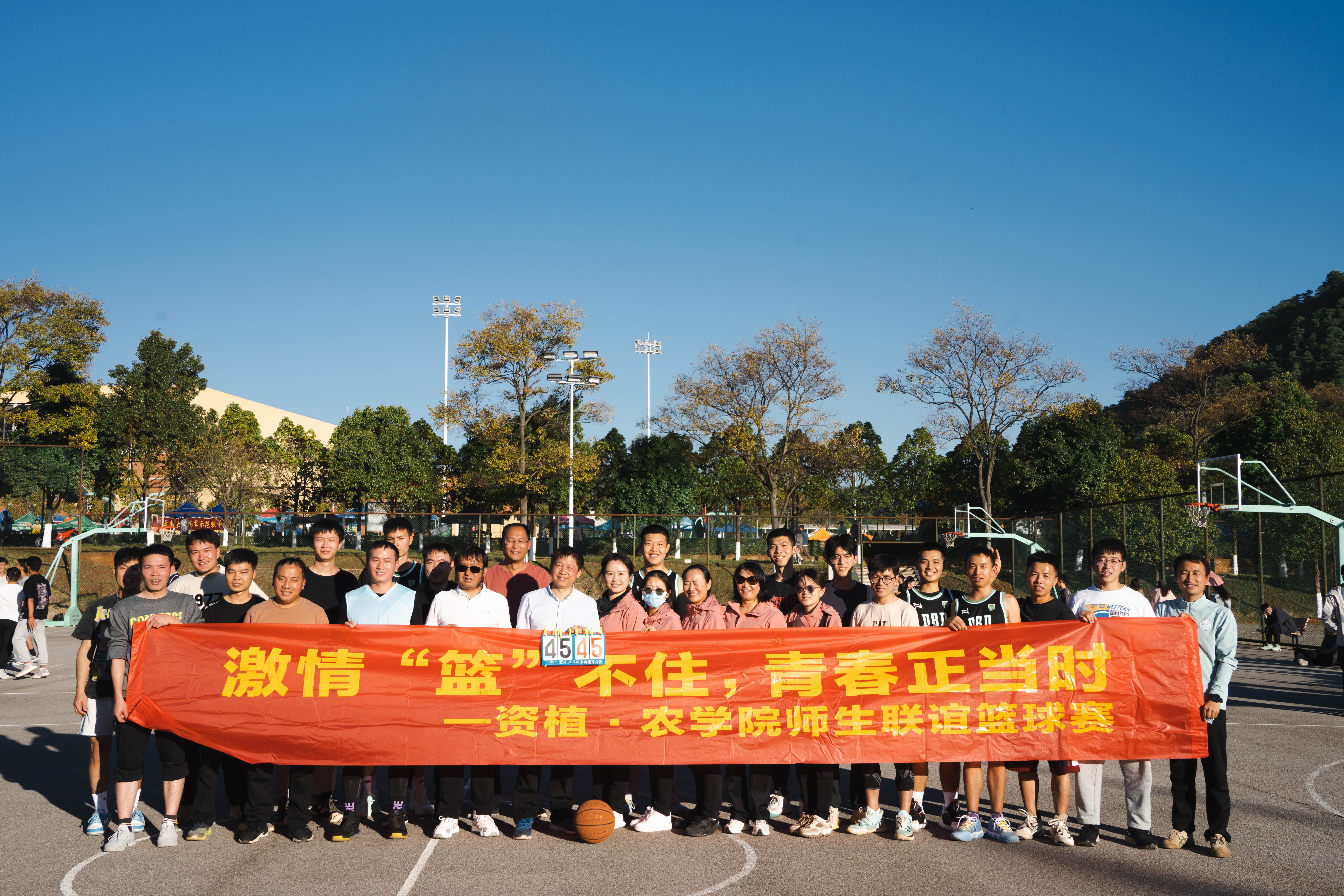 随后在下午四点,公司在楠苑篮球场开展了师生联谊篮球赛,现场汇聚了众多老师和研究生,比赛现场助威的呐喊声、进球后的欢呼声此起彼伏,正应了这次篮球赛的主题“激情篮不住,青春正当时”。