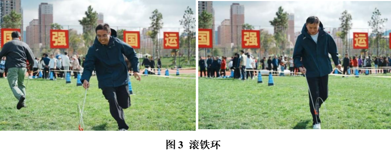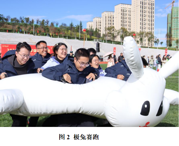 在随后举行的教职工趣味运动会中,公司教职工参加了极兔赛跑、鸿运彩球、巨人的脚步、滚铁环等所有项目。参赛选手们配合默契,出色的完成了各项比赛(图2-5)。