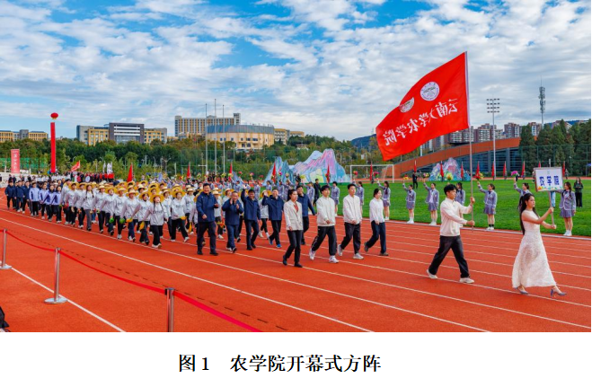 开幕式上,公司师生代表统一着装、迈着整齐有力的步伐、带着昂扬向上的面貌走过主席台前。他们个个精神饱满、自信乐观、热情友好,充分展现了农学人的阳光气质(图1)。