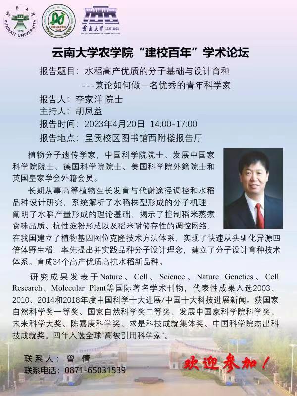 水稻高产优质的分子基础与设计育种---兼论如何做一名优秀的青年科学家