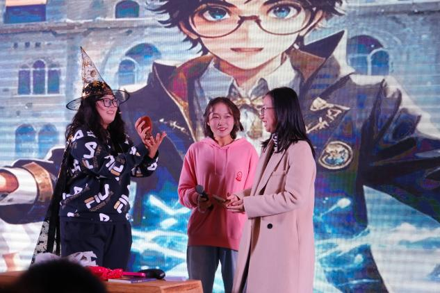 “物体消失术”、“碎纸复原”、“会飞的鸟”等魔术表演精彩绝伦,幽默诙谐的趣味魔术与现场师生互动,晚会氛围持续高涨。