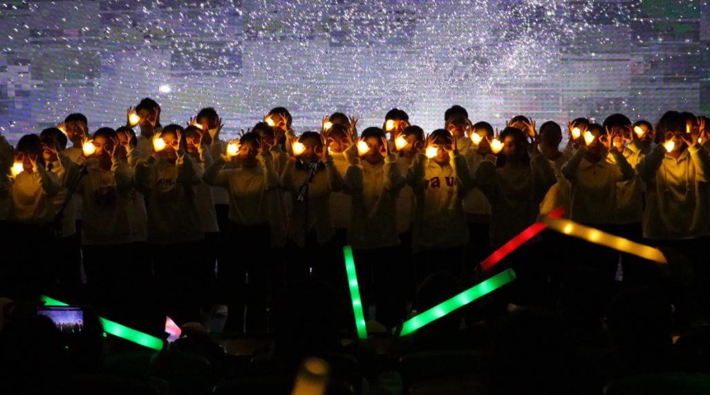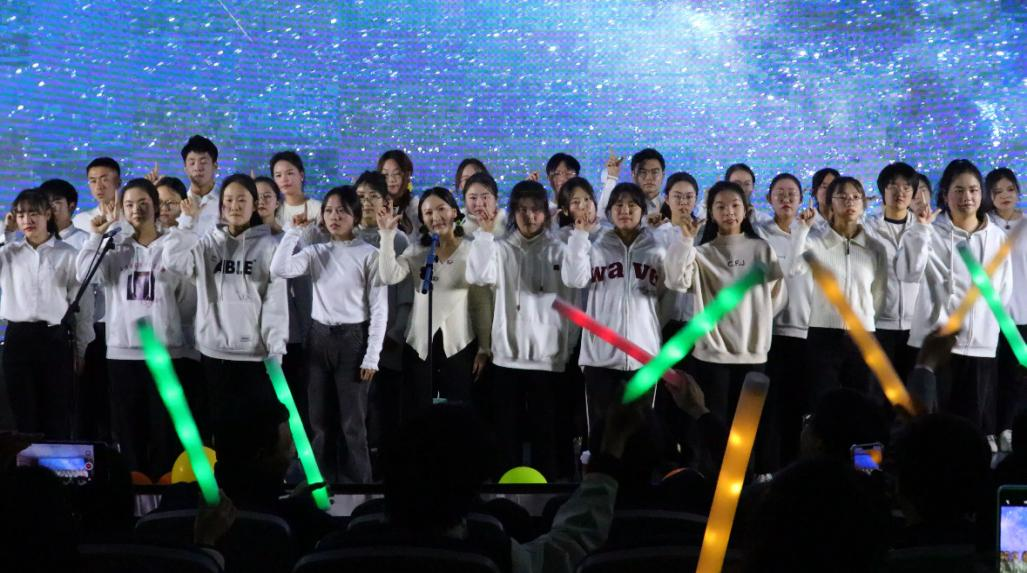 晚会在合唱歌曲《夜空中最亮的星》中落下帷幕,现场师生纷纷挥舞荧光棒共同合唱,表达不舍。